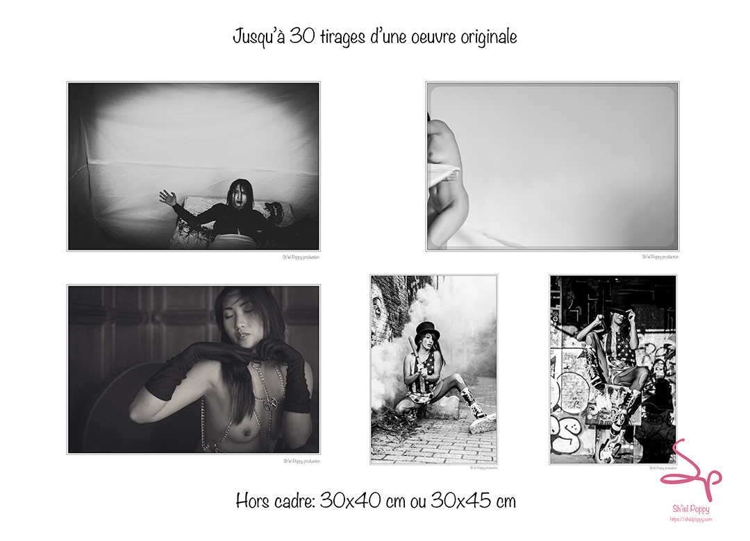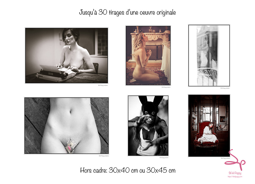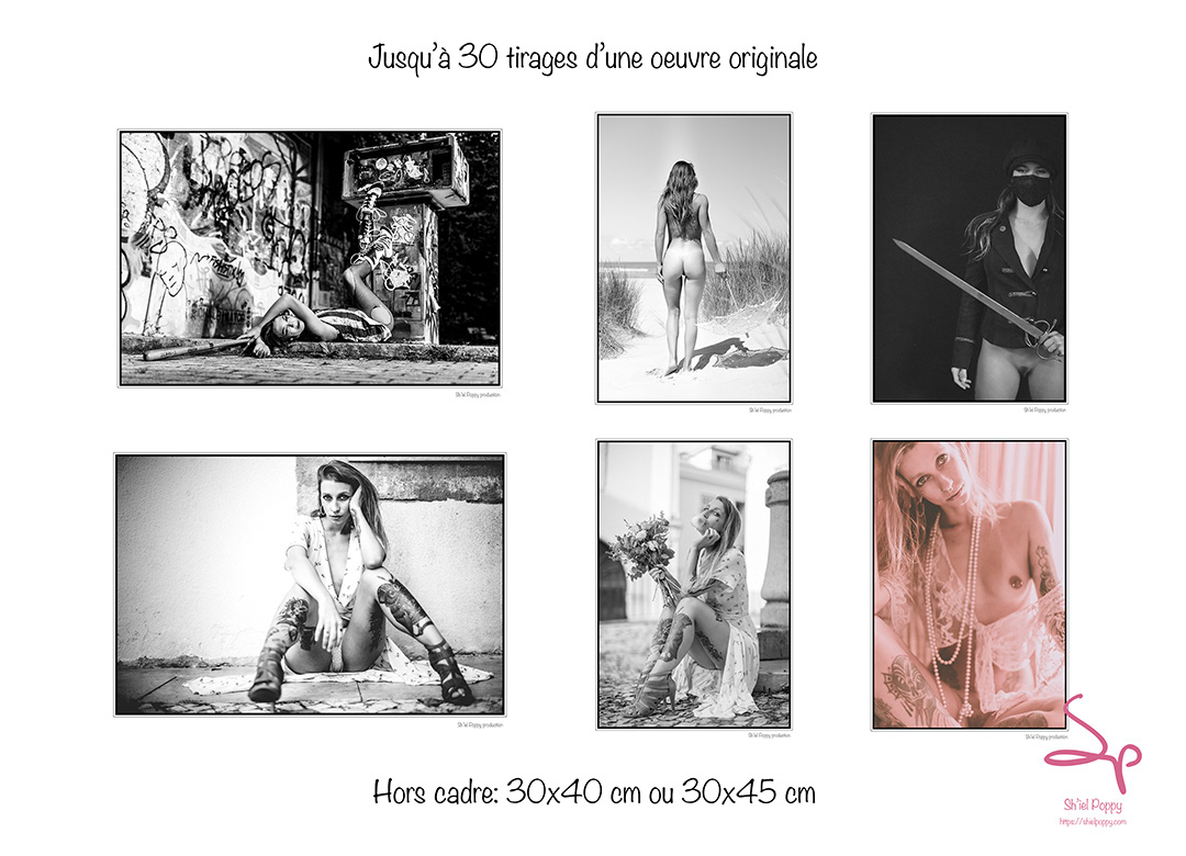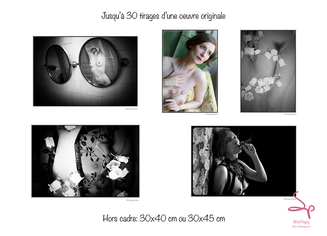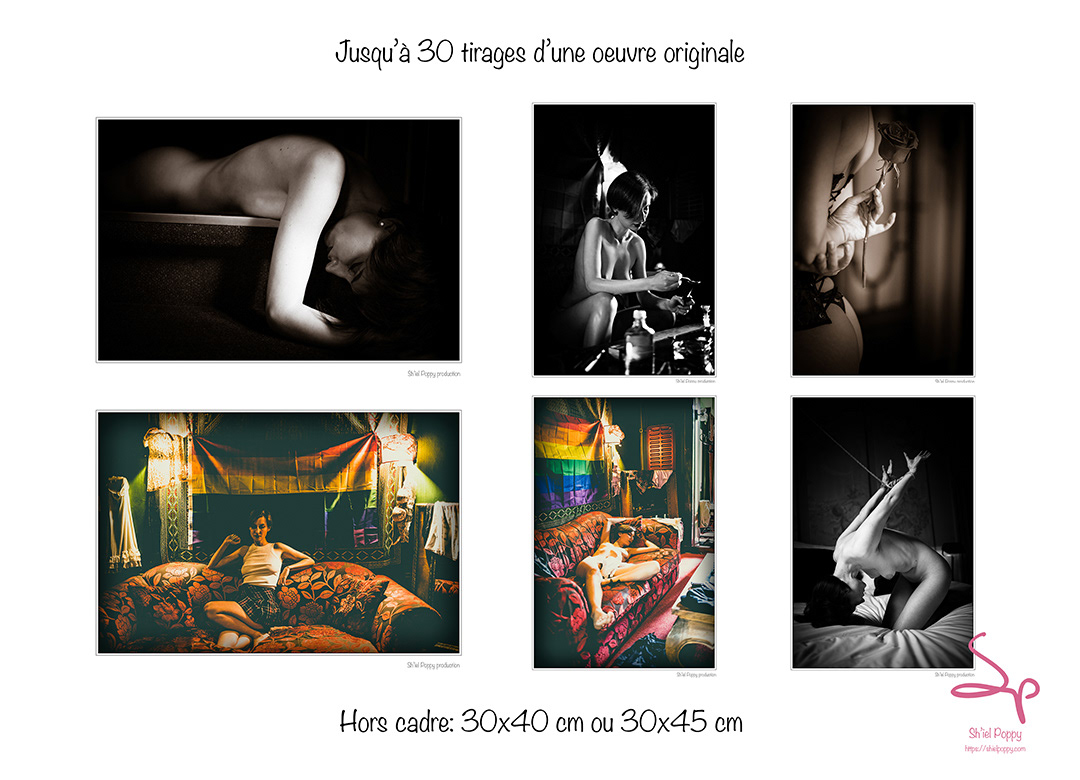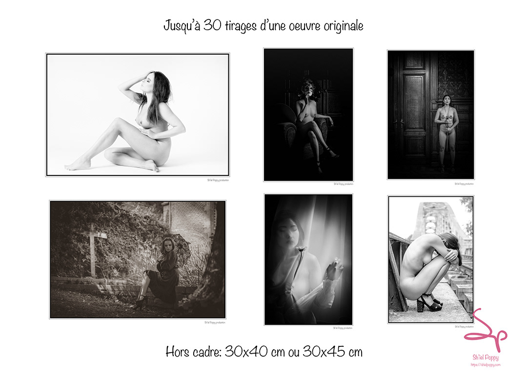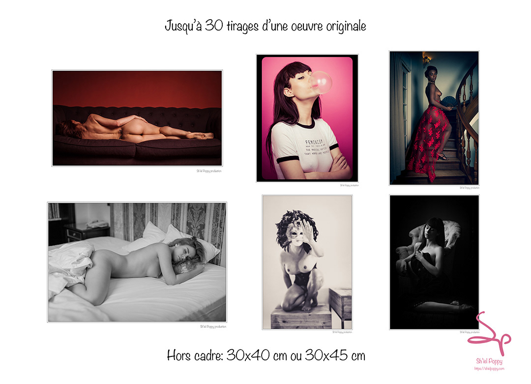 There are two categories: Framed photos are sold once and those that are not (printed under « Sh’iel Poppy Production ») may be printed up to 30 times.