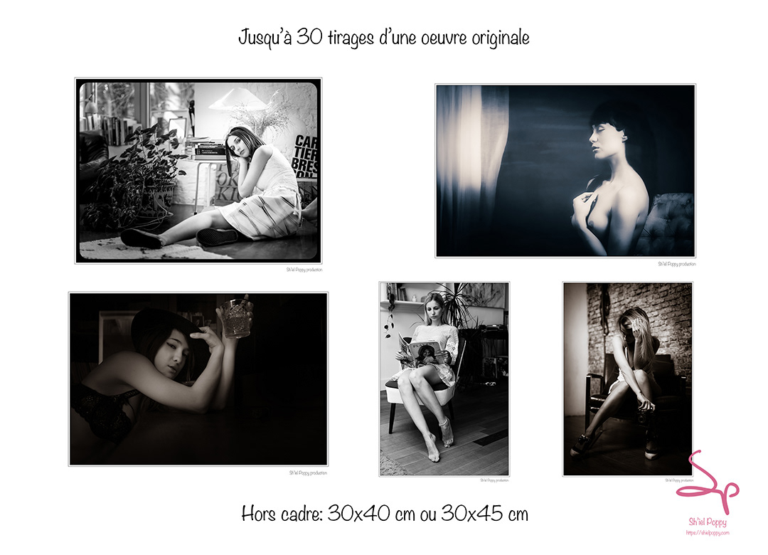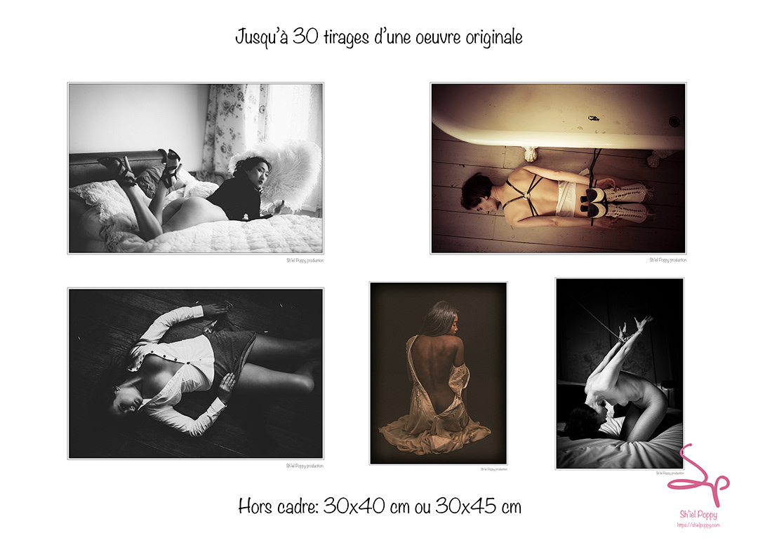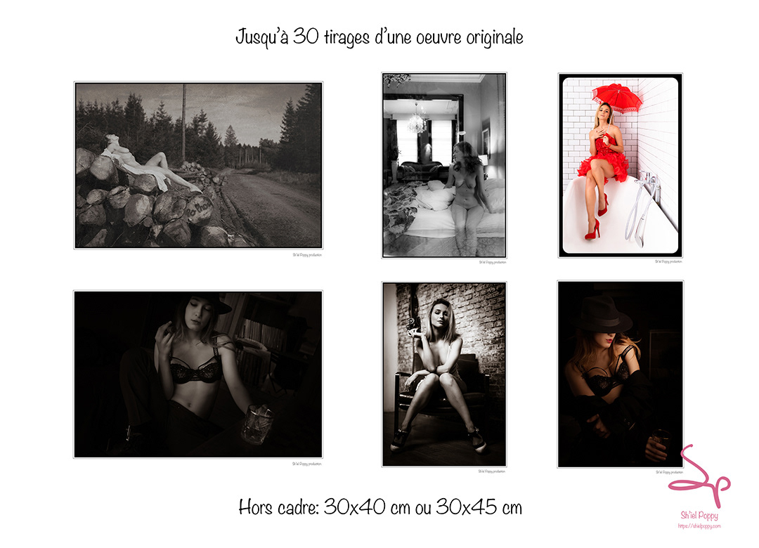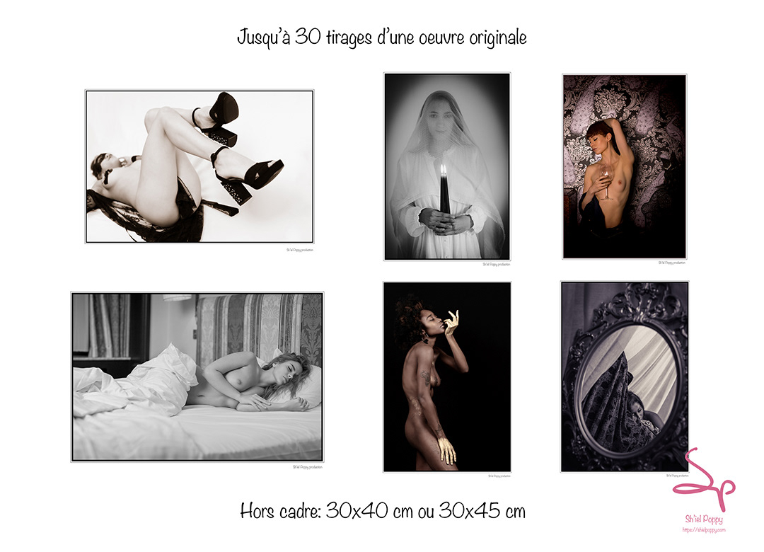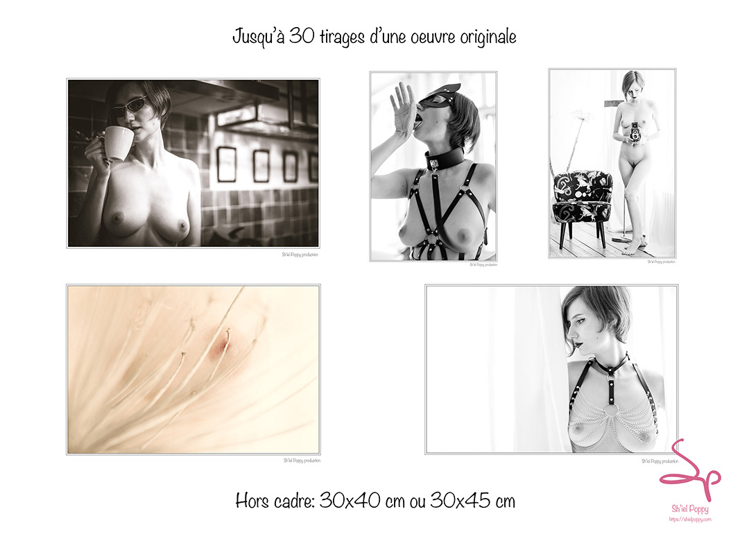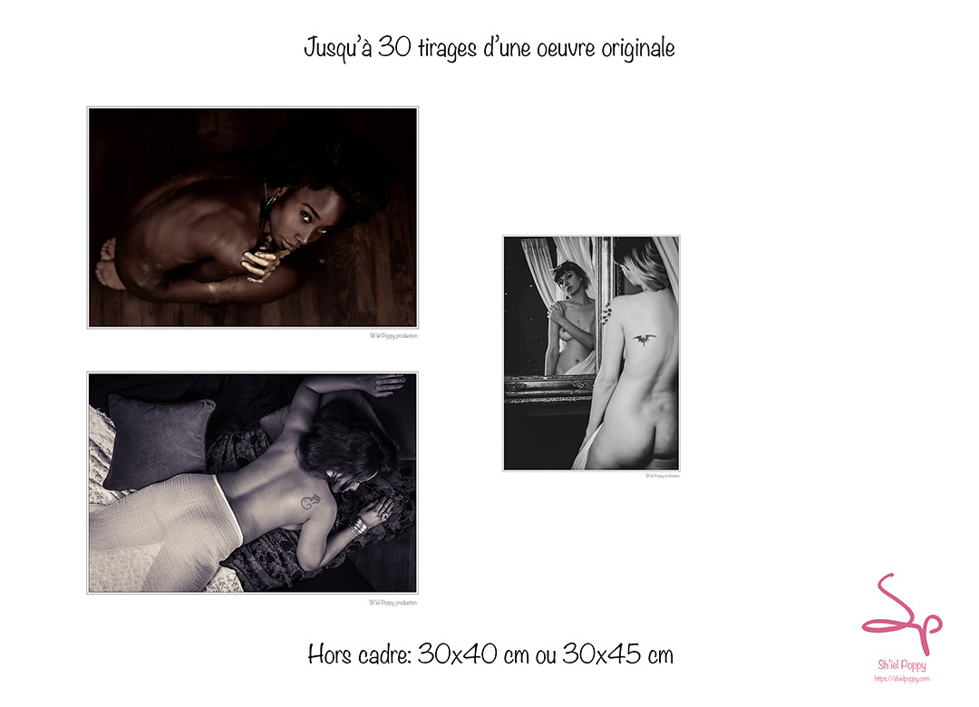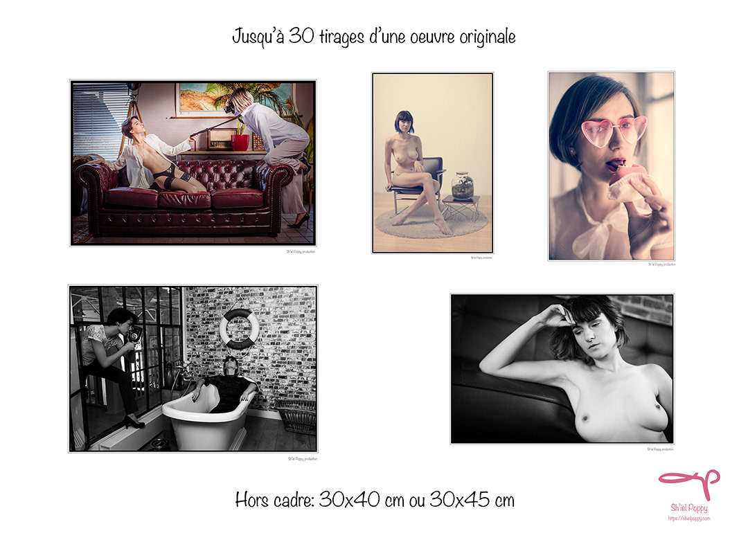 There are two categories: Framed photos are sold once and those that are not (printed under « Sh’iel Poppy Production ») may be printed up to 30 times.